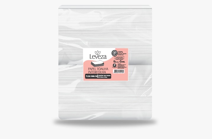 Toalha interfolha Leveza 100% Celulose virgem - 20 cm x 20 cm